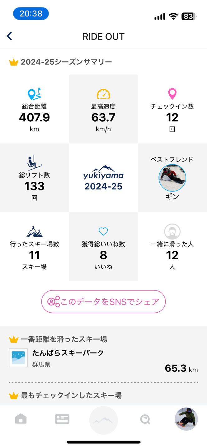 今年はチェックイン20回以上を目指したい🏂