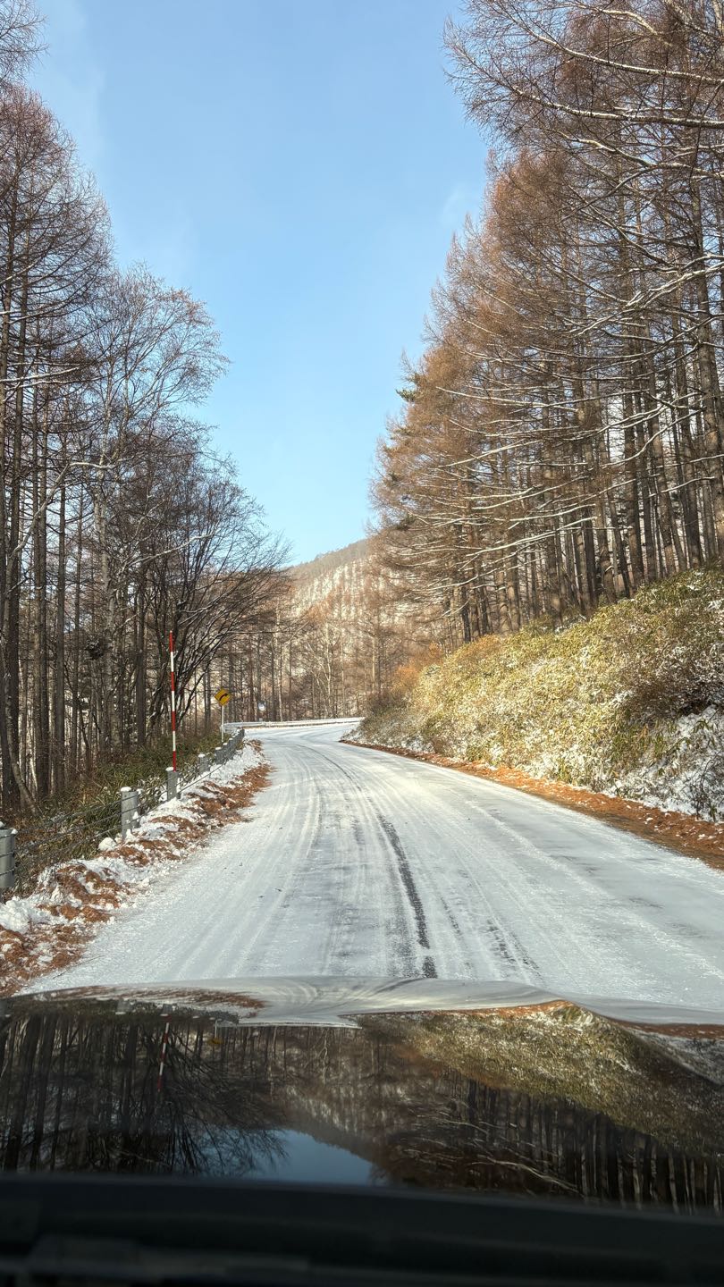 道中は圧雪路でややアイスバーン🧊